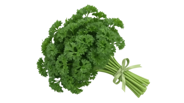 Isolated bunch of fresh curled parsley, an aromatic culinary herb for cooking and garnishing