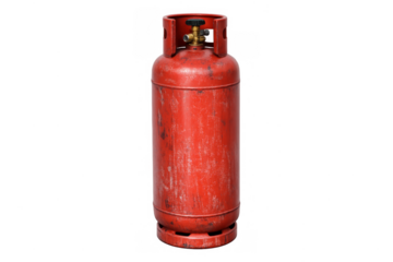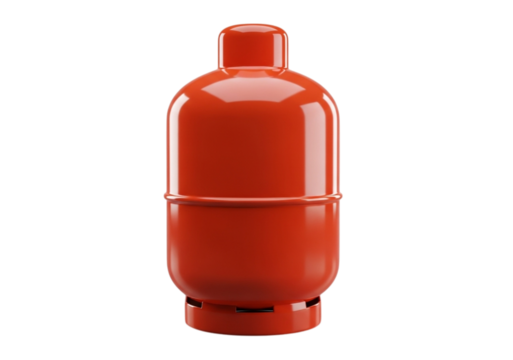Red propane gas cylinder on transparent background