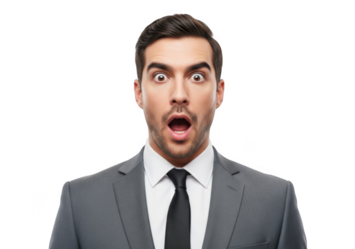 Surprised man with hand over mouth looking to the side with wide eyes open on transparent background