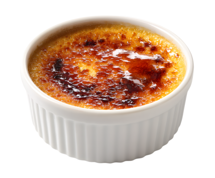 Soufflé pastry in ceramic ramekin on transparent background