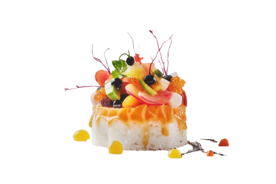 Gourmet sushi, studio shot, seafood, garnish, white background, food photography
