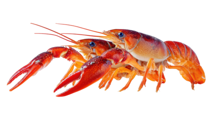 Red and white lobsters gather on black background many red and white lobsters showcased against dark backdrop