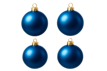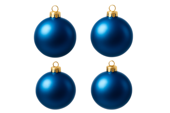 Set of blue, yellow, red, and green ball Christmas ornaments for festive decorations on transparent background