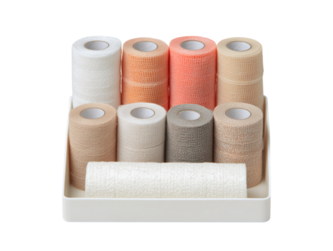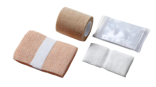 Bandages and gauze rolls in various sizes, Transparent background, PNG file