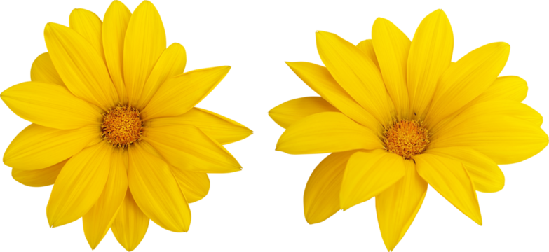 Top view of a bright yellow Gazania daisy flower, full bloom. Isolated on transparent background, png