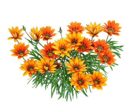 Elegant trio of vibrant gazania flowers with PNG transparent background