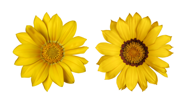 Yellow gazania rigens flowers isolated on transparent background