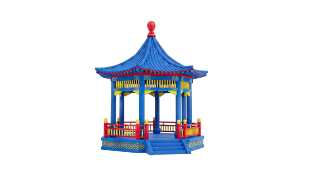 Elegant Wooden Gazebo with Octagonal Roof and Detailed Design.