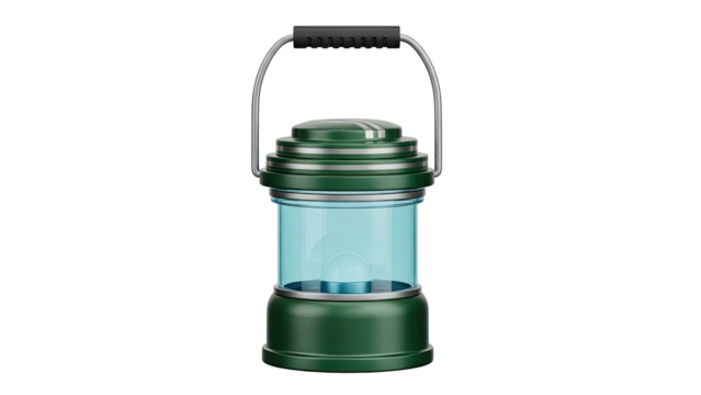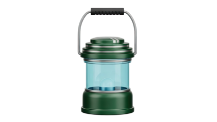 Green Camping Lantern with Blue Glass Cylinder