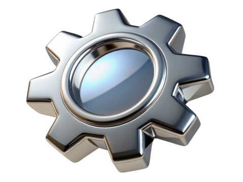 Metallic gear mechanism illustration precision engineering shiny silver cogwheel design industrial automation part 3d rendering plastic style icon on transparent background