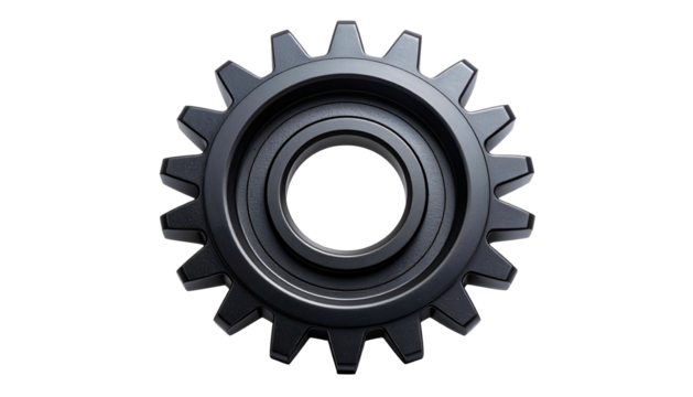 Shiny, metallic gear with teeth, isolated on a black background, realistic rendering
