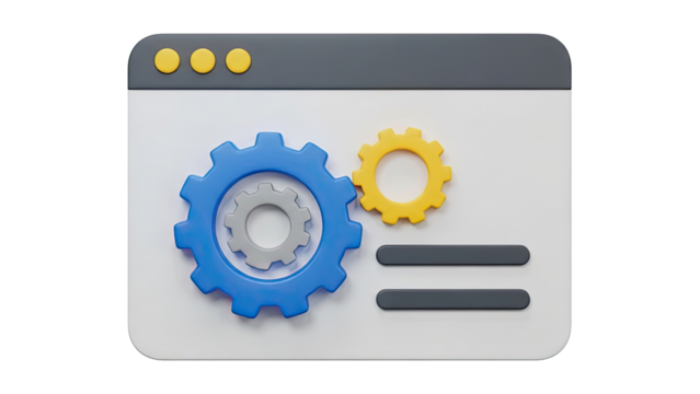 A glowing 3D gear icon with metallic textures, representing machinery and precision, displayed on white --ar 16:9 --v 7.0 --s 750