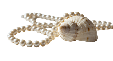 Photo Elegant Pearl Necklace With Seashell Isolated Black Background