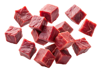 falling meat beef cubes  isolated on white background PNG, AI GENERATED