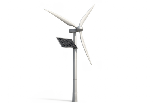 Solar panels and wind turbines generating clean and renewable energy as a sustainable alternative to fossil fuels isolated on transparent background