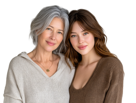 Heartwarming Moment Between a Young Woman and Her Elderly Mother as They Share a Loving Embrace in Gentle Warm Natural Light of the Day