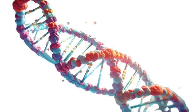 Twisted, colorful double helix representation, showcasing the structure of genetic material