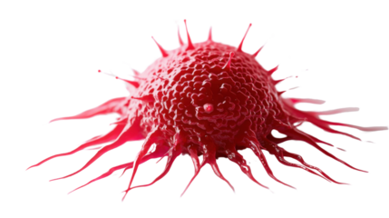 A vibrant, close-up digital rendering of a cell with protruding, branching tendrils