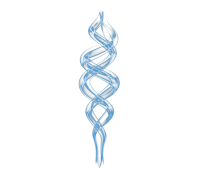 Genomics deoxyribonucleic acid DNA helix formed by swirling smoke to illustrate genetic testing and biotechnology research messaging for healthcare innovation decks and laboratory presentations