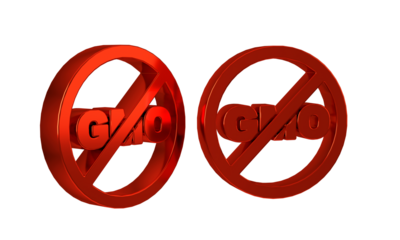 Red No GMO icon isolated on transparent background. Genetically modified organism acronym. Dna food modification.