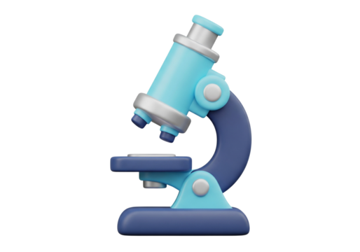 Stylized 3D Blue Microscope Icon for Science and Education on White Background