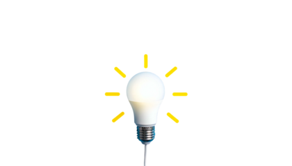 Stylized light bulb with radiating lines on white background