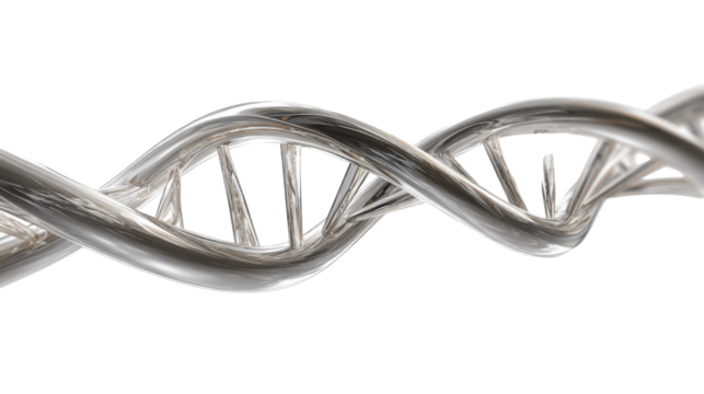 Metallic double helix structure representing dna, genomics, and scientific research with transparent background