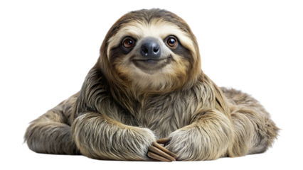 Adorable three-toed sloth resting peacefully close up showing detailed fur and gentle expression isolated on a neutral studio backdrop isolated on transparent background