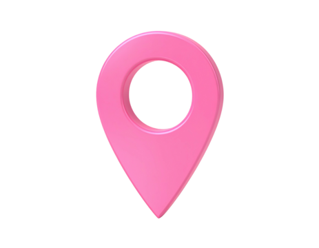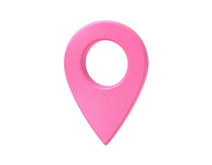 Shiny pink map pointer isolated PNG on transparent background, location pin icon for navigation and travel apps