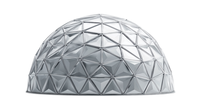 Silver geodesic dome structure isolated for futuristic habitat or exhibition design projects.