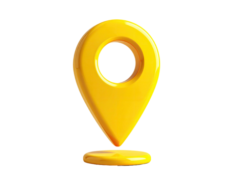 Yellow location pin icon, glossy, with black background