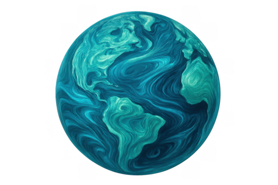 Earth globe swirling in deep blue and green colors, showing climate change, environment, and world sustainability concepts