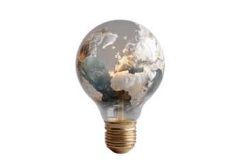 World Map Inside Lightbulb on Isolated Transparent Background