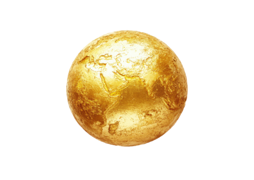 Golden globe showing continents on a black background