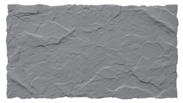 Detailed textured grey slate stone slab with rough edges isolated on a transparent background