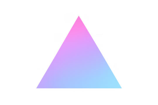 Abstract geometric mountain peak with gradient colors isolated on transparent background. Colorful gradient pyramid abstract design with pink purple and yellow hues isolated on white background.