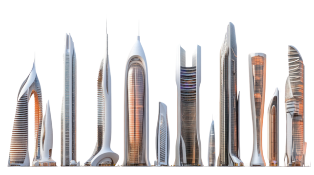 Photo of modern building design isolated on transparent background