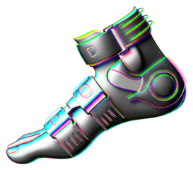PNG Stylized mechanical foot with vibrant accents.