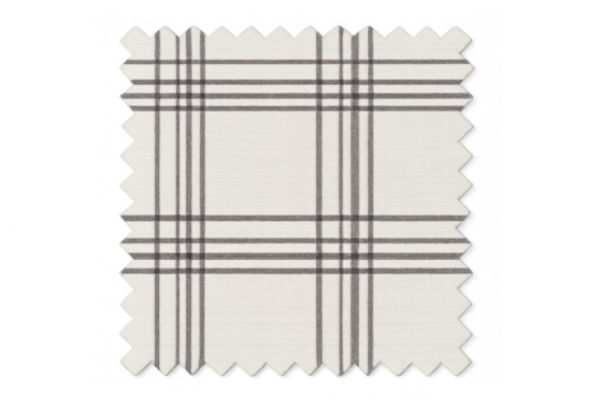 White fabric swatch featuring grey striped checkered pattern, lying flat against transparent backdrop