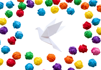 Symbol of peace featuring origami dove with paper