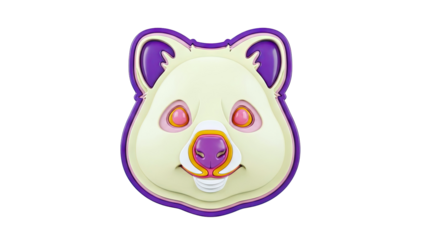 Stylized 3D Panda Face with Purple and Yellow Accents