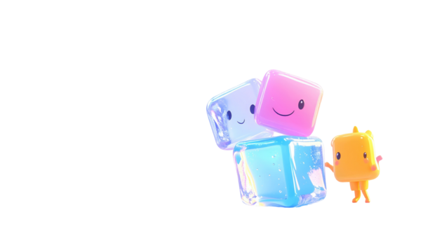 Smiling blue figure illustration on transparent background