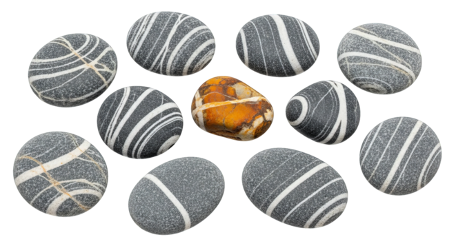 A cluster of blue and gray three dimensional cubes arranged in a geometric formation isolated on a transparent background