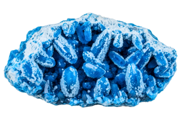 A cluster of blue shaded crystalline formations with geometric shapes showing sparkling mineral structure on white background