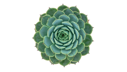 Succulent echeveria plant with green leaves in a modern geometric concrete pot, transparent background