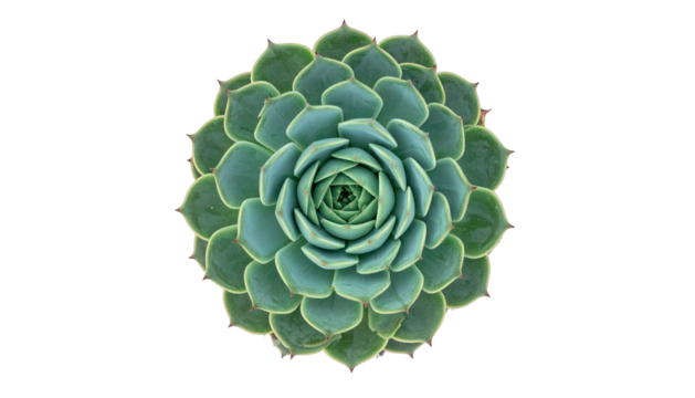 Overhead shot of a perfectly symmetrical succulent against a black background
