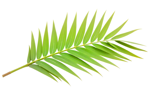 Tropical leaf with glossy green frond on transparent background
