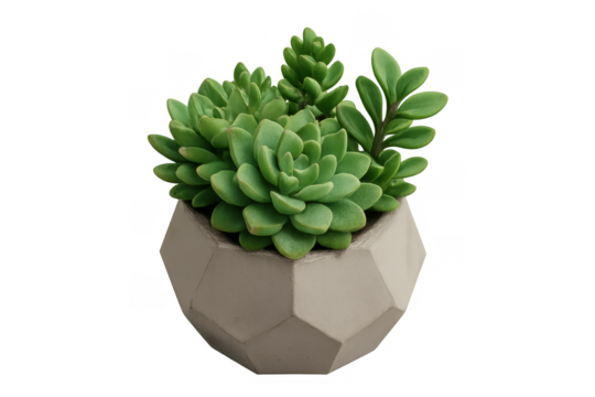 Air plant in gray geometric planter isolated on transparent background is displayed