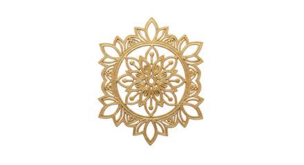 Ornate golden circular floral medallion with intricate patterns isolated on a transparent background