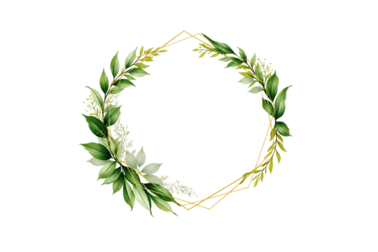 Luxury Botanical Wreath with Gold Geometric Circle, Transparent Background